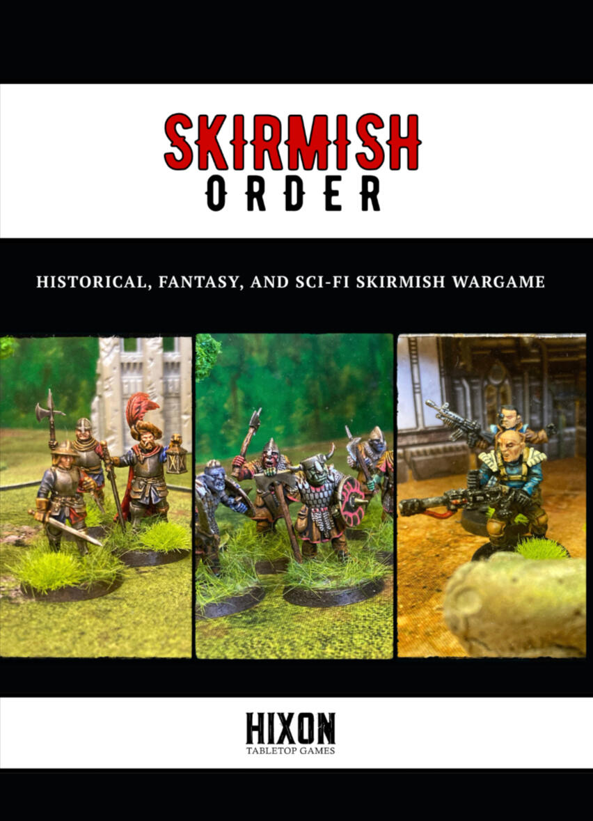 Created with flexibility in mind, Skirmish Order is fully miniatures agnostic, multi-scale, sandbox wargaming ruleset, letting you use the models you already own or plan on owning. It’s modular, adaptable skirmish rules emphasise decision-making, storytelling and battlefield friction.